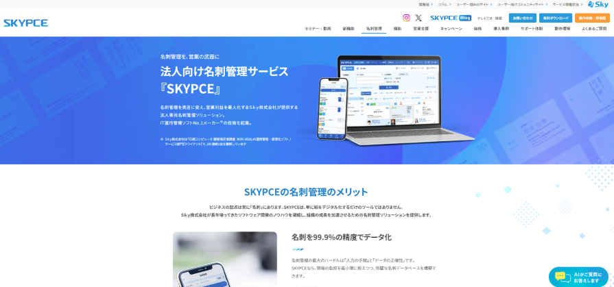 SKYPCE国内自社での正確な名刺データ化(精度99.9%)