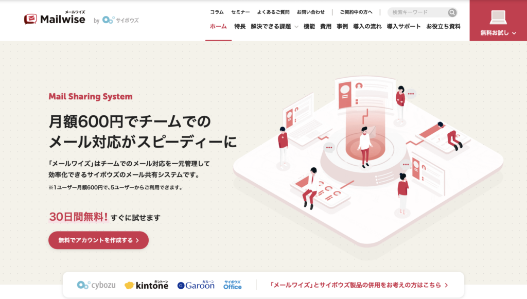 サイボウズの他の製品(Garoonやkintone)とスムーズに連携できる点も、メールワイズの大きなメリットです。