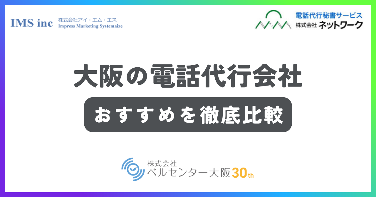 当記事では大阪でおすすめの電話代行会社を紹介します。電話代行会社の選び方や利用するメリット、費用相場なども解説しているので、当記事を読めば自社に合った電話代行会社を選べるようになります。大阪で電話代行会社への依頼を検討している方はぜひご覧ください。