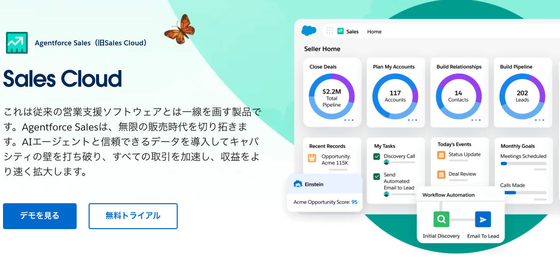 Salesforce Sales Cloudは、世界で15万社以上の導入実績を持つクラウド型SFAです。顧客情報や商談の管理、進捗の可視化まで一元化でき、営業チーム全体の生産性向上が期待できます。