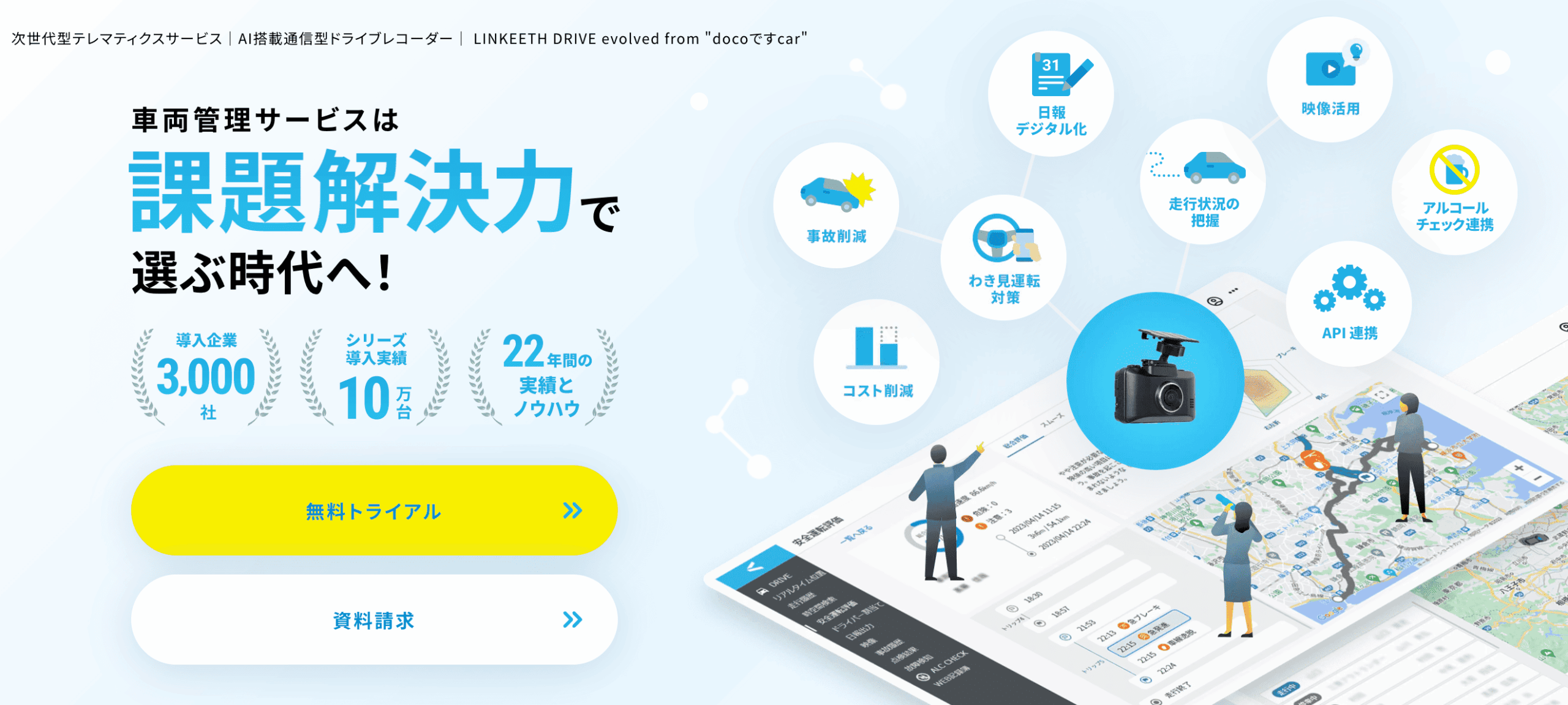 LINKEETH DRIVE(リンキースドライブ)は、NTTグループが提供する信頼性の高い次世代型車両管理システムです。