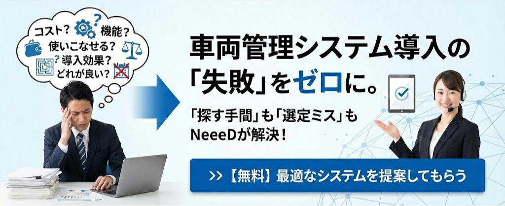 「どの車両管理システムが自社に合うかわからない」という方は、ぜひNeeeDへご相談ください。